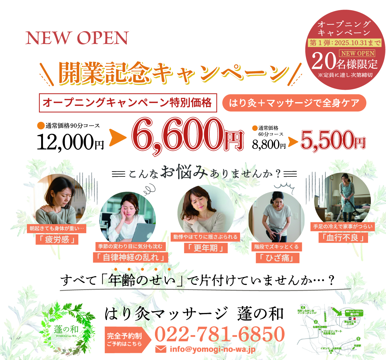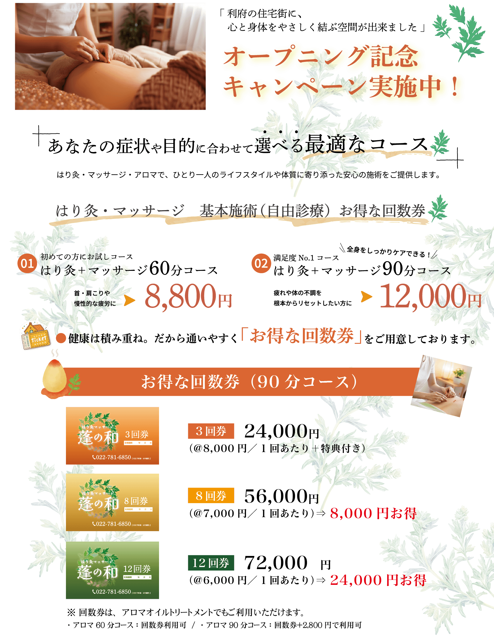 はり灸マッサージ専門店 女性優先プライベート空間が利府に誕生!!